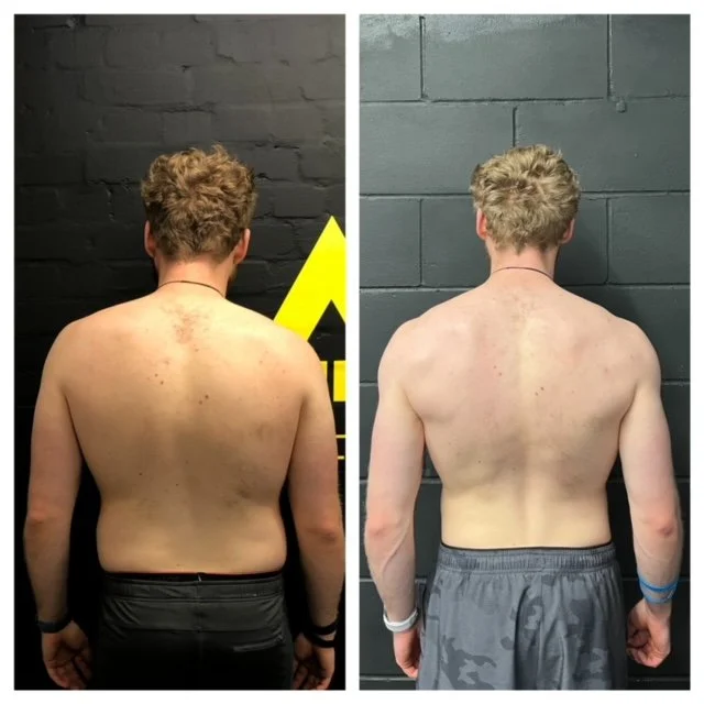 An example of a transformation from a guy who hadn’t done too much weight training before coming in to the studio. We worked on 6 week plans training 4 times a week and when this photo was taken were at week 24.
